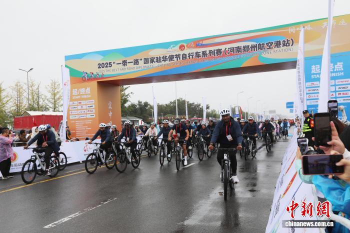 2025“一带一路”共建国家驻华使节自行车系列赛郑州开赛 中新网郑州9月27日电 (陈贵洋)9月27日,2025“一带一路”共建国家驻华使节自行车系列赛在河南郑州航空港经济综合实验区(以下简称郑州航空港区)双鹤湖中央公园开赛,来自马来西亚、利比里亚、厄瓜多尔、西班牙等“一带 09-28