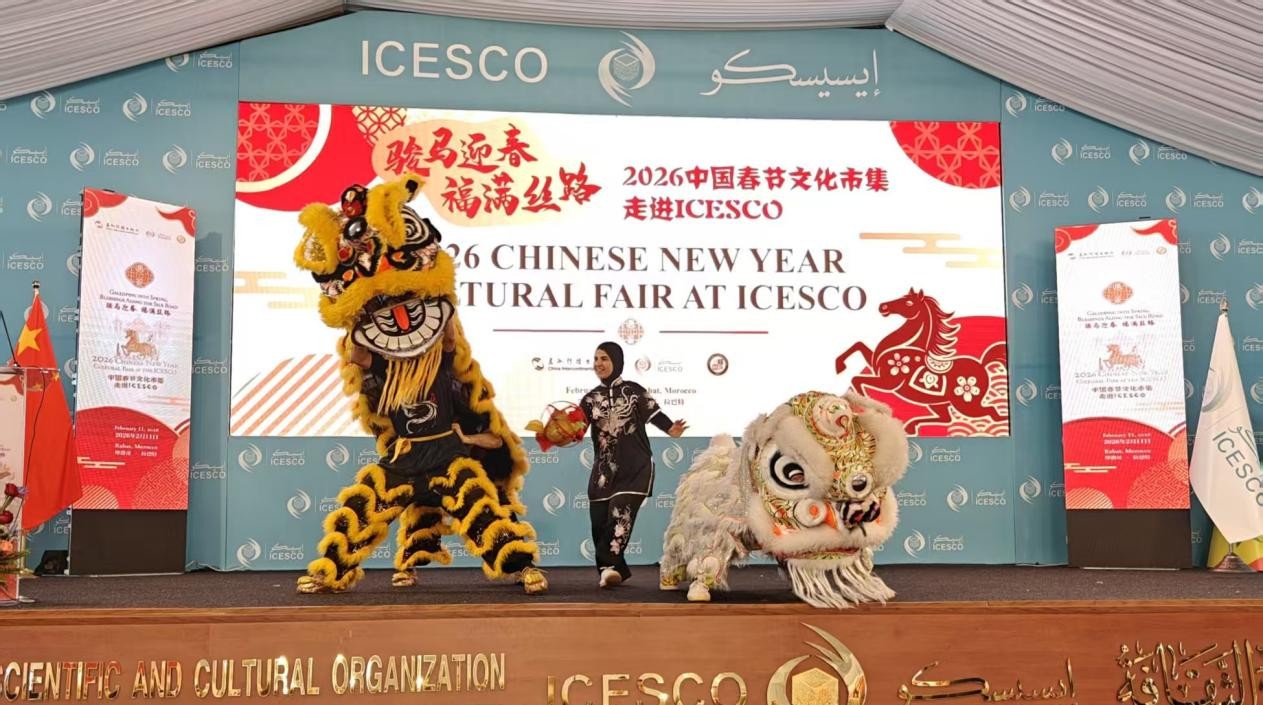 中国春节文化市集走进伊斯兰世界教科文组织总部 人民网迪拜2月12日电(记者张志文)拉巴特消息:2月11日,在农历马年春节即将到来之际,“骏马迎春福满丝路”中国春节文化市集走进伊斯兰世界教科文组织总部活动在摩洛哥拉巴特成功举办。中外文化融合的舞狮表 02-13