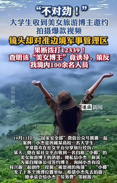 大学生识破间谍套路并举报 警惕心守护国家安全 美女博主设局,大学生一眼识破“合作陷阱”西藏某高校大学生小杰最近成为焦点——他用警惕和果断,揭穿了境外间谍情报机关的“合作陷阱”。事情始于社交平台:小杰爱分享旅行攻略,被自称“小椰”的美女博主私信 10-14