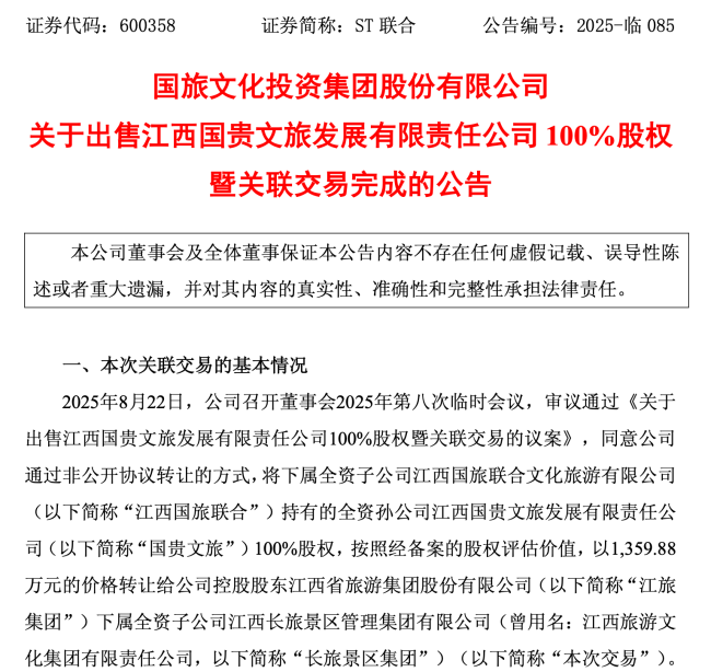 为了卖好“润田”水,ST联合加快剥离旅游营销业务 国旅文化投资集团股份有限公司(下称“ST联合”)一边高调并购江西润田实业股份有限公司(简称“润田实业”),另一边也在加快剥离旅游营销相关业务。 10-11 整点消费