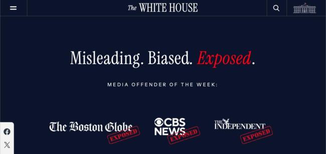 特朗普如何“对付”主流新闻机构 白宫设“媒体耻辱榜” 白宫再次针对媒体采取行动。11月28日,美国白宫网站新增了一个页面,推出“媒体偏见追踪”功能,列出了一些媒体名称、记者姓名及其所谓的“罪名”,以及所谓的“真相”和“信息来源”等内容,并特别设计了“违规媒体耻辱榜” 12-03