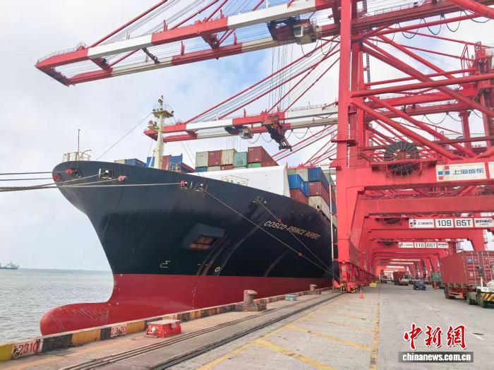 首批来自秘鲁钱凯港的进博会展品抵达上海洋山深水港 中新网上海10月15日电 (记者 陈静)第八届中国国际进口博览会(简称:进博会)将至。15日,在上海洋山深水港,首批来自秘鲁钱凯港的进博会展品从“中远鲁珀特王子港”轮顺利卸下。上海边检机关联合口岸单位开通进博会展 10-15