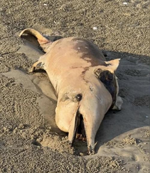 广东湛江一处沙滩现中华白海豚尸体 疑因难产死亡 10月26日,在广东湛江硇洲岛谭北湾的一处沙滩上发现了一只中华白海豚的尸体。这只成年白海豚吻部修长,身体呈现出灰白色并带有斑点。次日,从湛江市硇洲派出所了解到,初步调查显示这只白海豚因难产而死亡,随后被海浪冲上了岸边沙滩 10-27