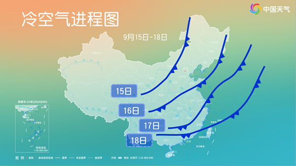 今年下半年第一场大范围冷空气来袭 北方气温将创新低 中国天气网讯 今年下半年第一场大范围冷空气过程来袭!受其影响,今天(9月15日)开始至18日,我国中东部大部地区气温下降,北方气温将大面积创立秋后新低,南方旷日持久的高温也将暂告一段落。 09-15